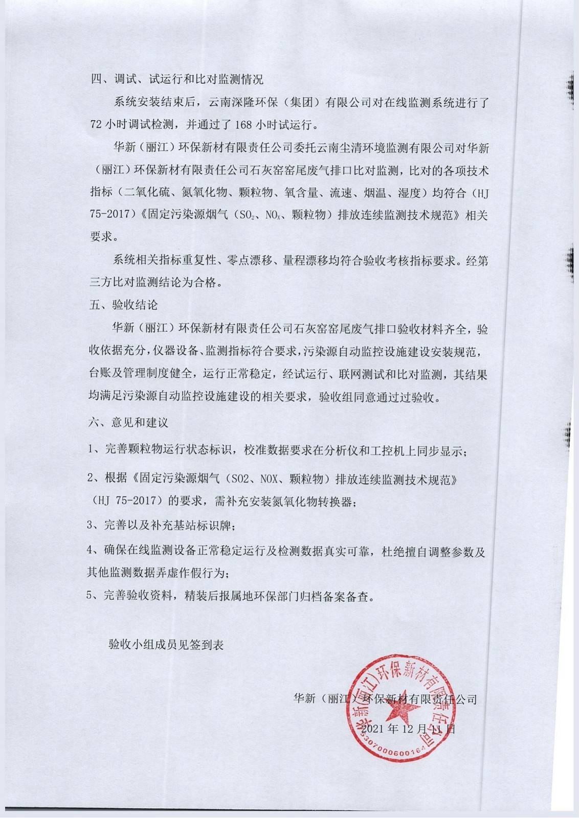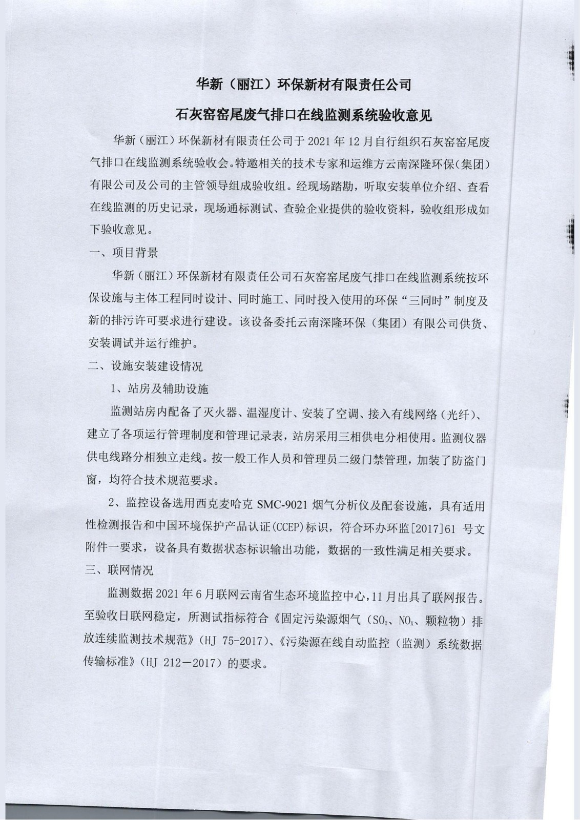 1、華新(麗江)環(huán)保新材石灰窯窯尾廢氣排口在線監(jiān)測系統(tǒng)驗收報告.pdf