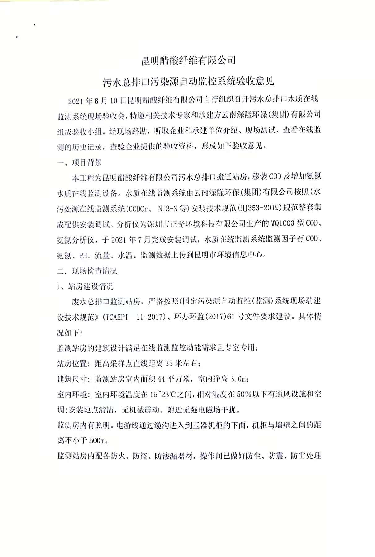 昆明醋酸纖維有限公司廢水設(shè)備驗收報告.pdf